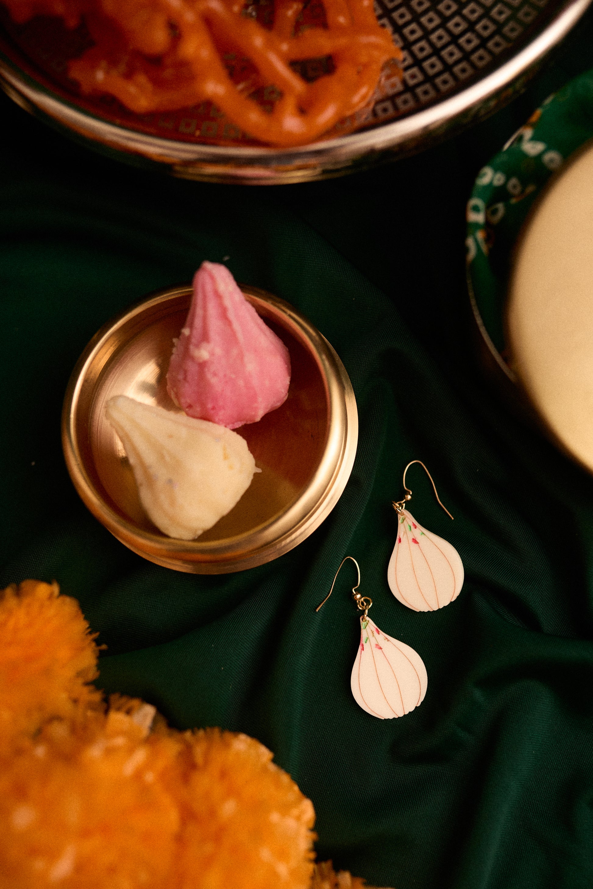 Inspired by the iconic, beautifully pleated Moodak—the beloved sweet offered to Lord Ganesha—these earrings are a unique tribute to flavor and festivity.